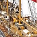 Su casco es de acero así como los «machos» de los mástiles y las vergas mayores; el resto de la arboladura es de madera.