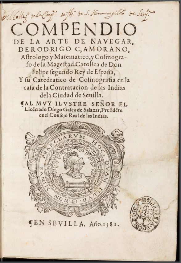 ZAMORANO, Rodrigo. Compendio del Arte de Navegar. Sevilla: En casa de Andrea Pescioni, 1582.