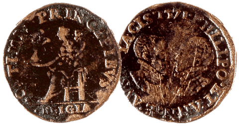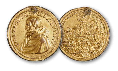 Felipe II y Ana de Austria. Medalla conmemorativa de la batalla naval de Lepanto.