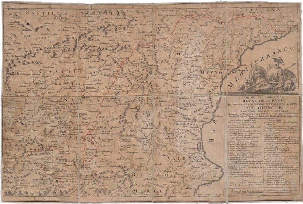 Mapa de una porción del Reyno de España que comprende los parages por donde anduvo don Quixote y los sitios de sus aventuras