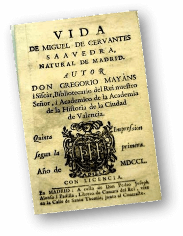 La biografía de Cervantes se ha ido elaborando a partir de las referencias y alusiones que el propio Cervantes fue intercalando a lo largo de su obra literaria, de lo que, al parecer, se sirvió Gregorio Mayans y Siscar en 1738 para escribir Vida de Miguel de Cervantes considerada la primera biografía del genial escritor, y de una segunda fuente compuesta por los diversos documentos conservados que han ido aflorando a partir del S.XIX, algunos de los cuales fueron utilizados por Martin Fernández de Navarrete para elaborar la biografía que aparece en la edición de la Real Academia Española de 1819.