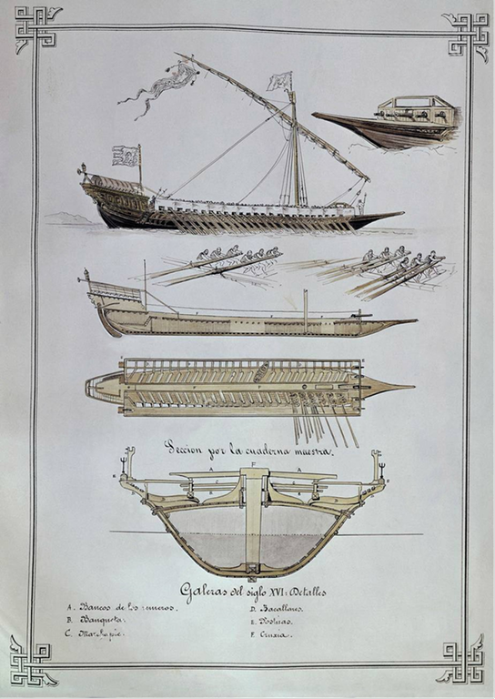 En pleno siglo XVI el diseño de las galeras evolucionó hasta alcanzar una perfección en su tipo y características, manteniendo sus líneas invariables, en lo fundamental, hasta el S.XVIII.