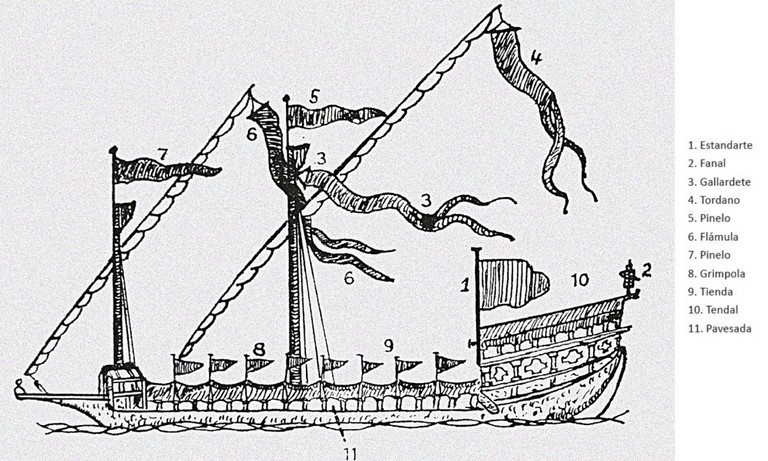 Un atributo imprescindible en estas galeras especiales, representativo de dignidad y mando, era el FANAL.