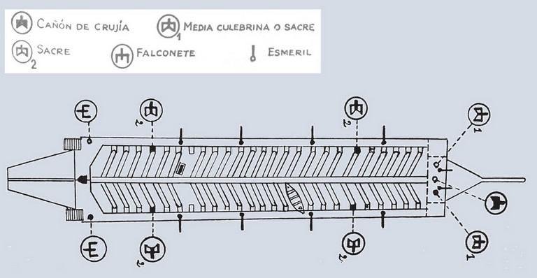 Artillado completo de una galera ordinaria española (s.XVI)