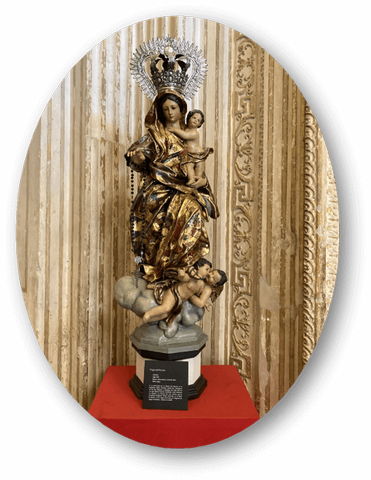 ¿Podrías decir donde se encuentra la pieza de la Virgen del Rosario que presentamos en esta imagen?