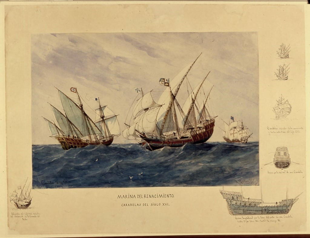 [1] En el Renacimiento las carracas del medievo se volvieron naos, más manejables, con castillos a popa y proa, y más velas cuadras, aunque solo podían navegar aproximadamente hacia donde soplara el viento; con un porte aproximado de 200 a 600 toneladas.