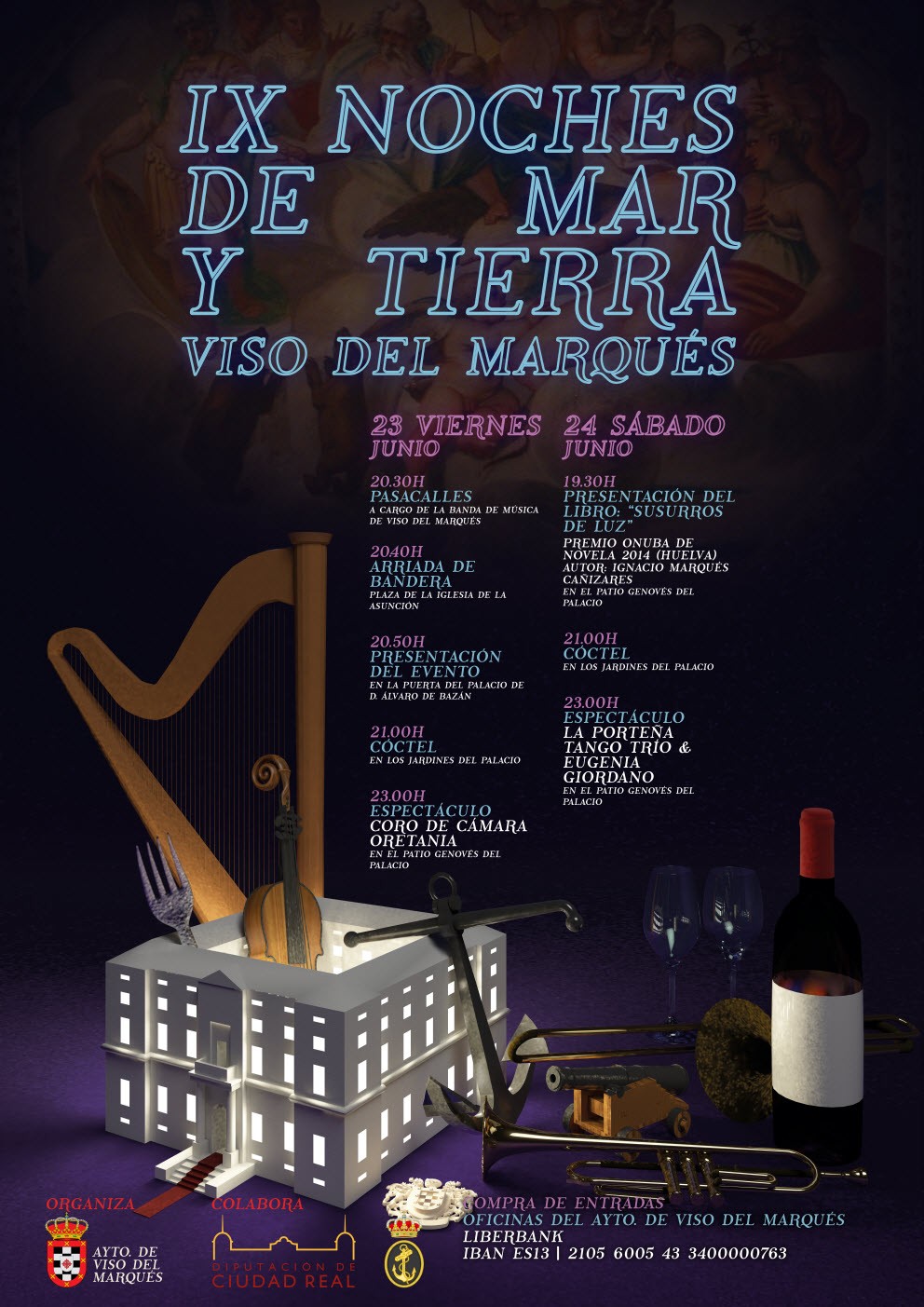 Los próximos 23 y 24 de Junio, bajo la denominación genérica de "NOCHES DE MAR Y TIERRA" en su IX edición, hay programadas diferentes actividades, entre las que se incluyen pasacalles, espectáculos, presentaciones así como un solemne arriado de bandera, en el incomparable marco del Palacio Museo Alvaro de Bazán.