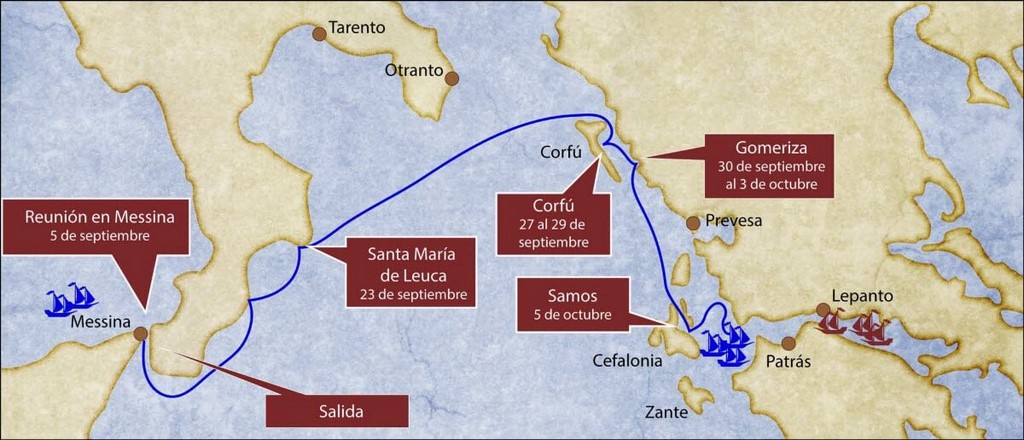 Una vez tomada la decisión de emprender una expedición naval y reunida en Mesina la flota de los coaligados, había que decidir el objetivo específico que no podía ser otro que la destrucción de la flota turca de Alí Pachá.