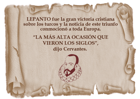 Un cronista de excepción llamado CERVANTES, inmerso en unas fiebres que lo tenían doblado, aportaría una lúcida y dramática crónica de aquella terrible batalla, que quedará para la historia como herencia y descripción del horror en sus formas más extremas.