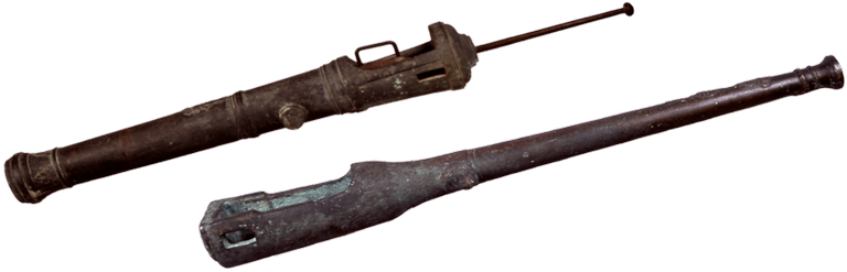 - Las piezas de artillería más pesadas iban ....................... y las más ligeras y portátiles en ............................ .