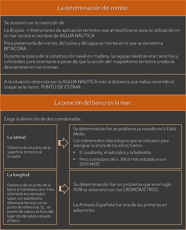Históricamente el desarrollo de la navegación estuvo ligado a la resolución de:
