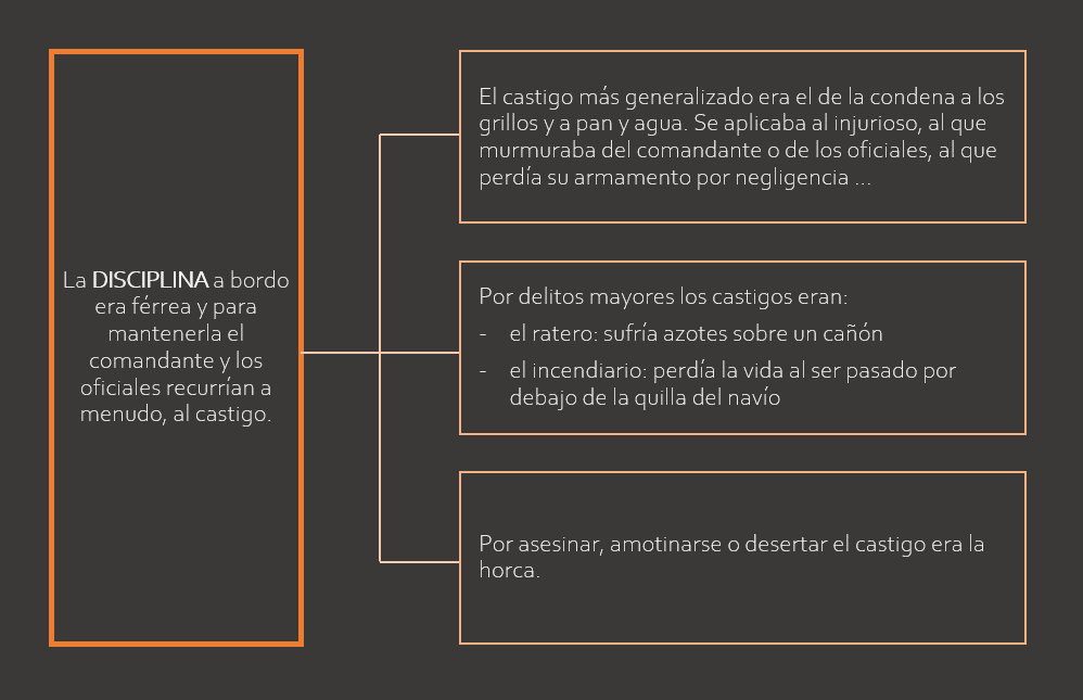 El Comandante permanecía encerrado en su camarote y vigilado por un infante de marina armado con un mosquete, de aquí viene la famosa frase empleada en la Armada: “la soledad del mando”, ya que ni los oficiales le dirigían la palabra. Esta era una forma de hacerse respetar.
