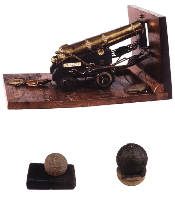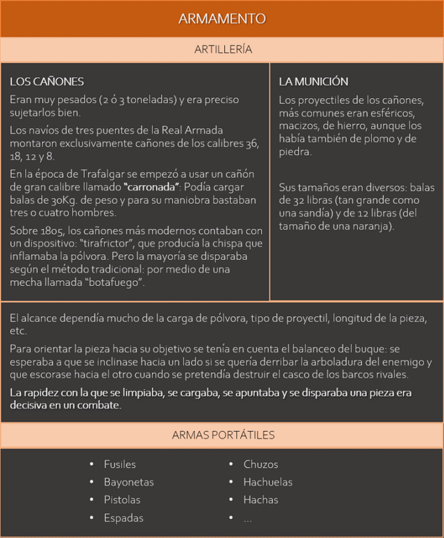 Casi la totalidad de los cañones apuntaban por los costados de los buques, salvo los dos de popa que defendían el timón.