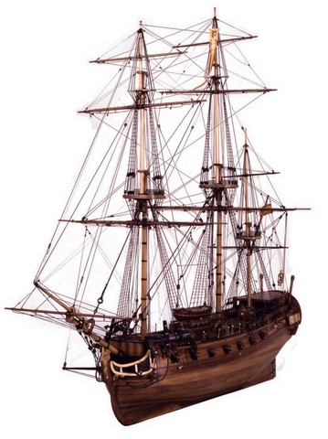 Por otra parte las FRAGATAS comenzaron llevando 10 ó 15 cañones en la cubierta alta, aumentando su número progresivamente, primero a 28 y por último a 60, confundiéndose con los navíos de clase inferior.