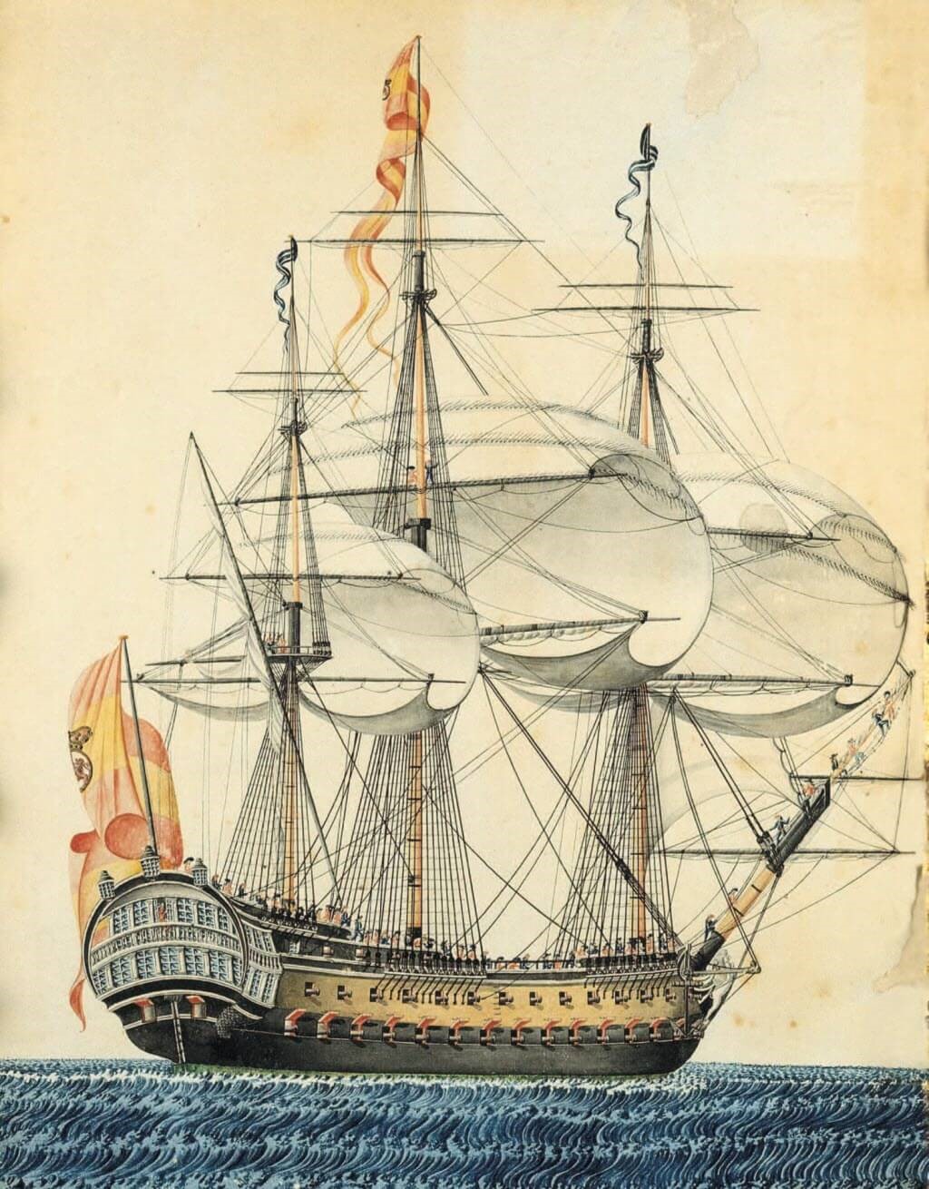 Así podemos citar como navío de dos puentes el “San Juan Nepomuceno” cuya botadura se realizó en 1766.